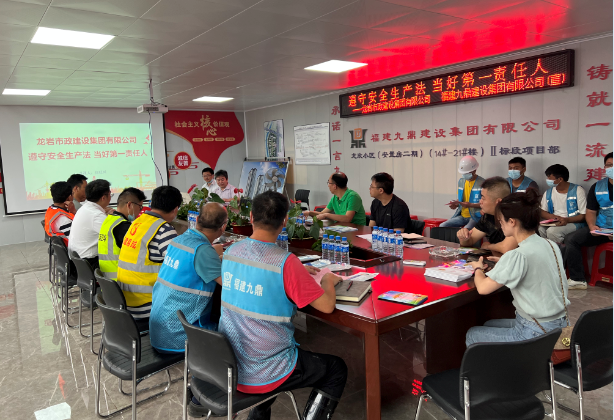 徐旺興董事長以講座形式深入淺出的向項目部管理人員及一線工人上了一堂精彩的“遵守安全生產法 當好第一責任人專題課,并進一步要求在建項目要緊緊圍繞“安全生產月”活動主題內容,完善安全管理制度,落實安全生產責任,加大安全教育宣傳力度,提高施工現(xiàn)場的防范、應急自救能力,并鼓勵現(xiàn)場一線工人積極舉報身邊的安全生產事故隱患和各類非法違法生產建設經營行為。